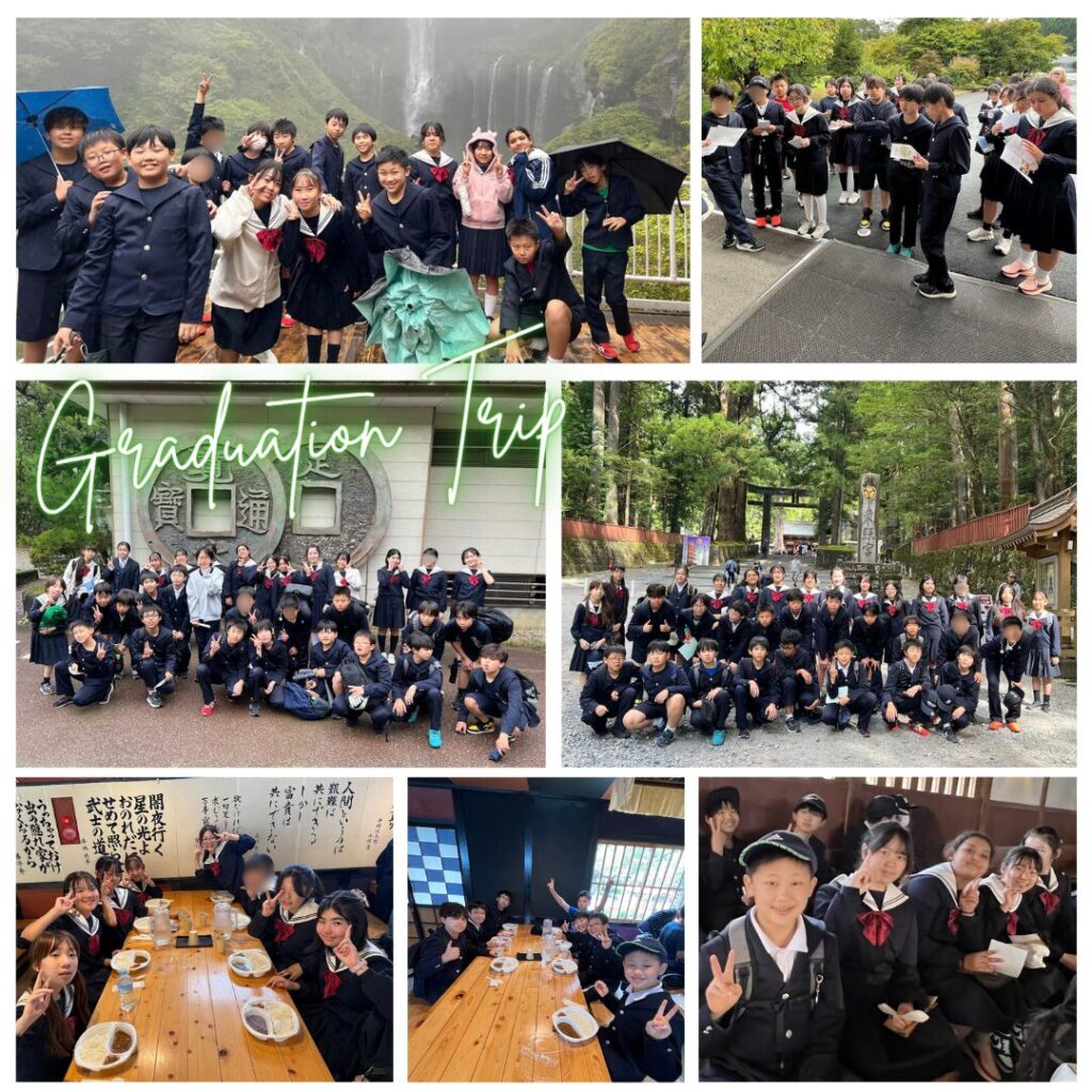 9月30日(火)~10月1日(水)に6年生の修学旅行がありました。1日目は日光東照宮の見学のあとに、日光江戸村でグループ活動を楽しみ、2日目は華厳の滝、足尾銅山、星野富弘美術館の見学を行いました。天気は崩れがちでしたが、何とか持ちこたえ、体調を崩す子もなく、無事に行ってくることができました。忙しない日程ではありましたが、子供たちは思い思いに楽しんでいる様子でした。小学校生活の中の良い思い出になってくれたことと思います。