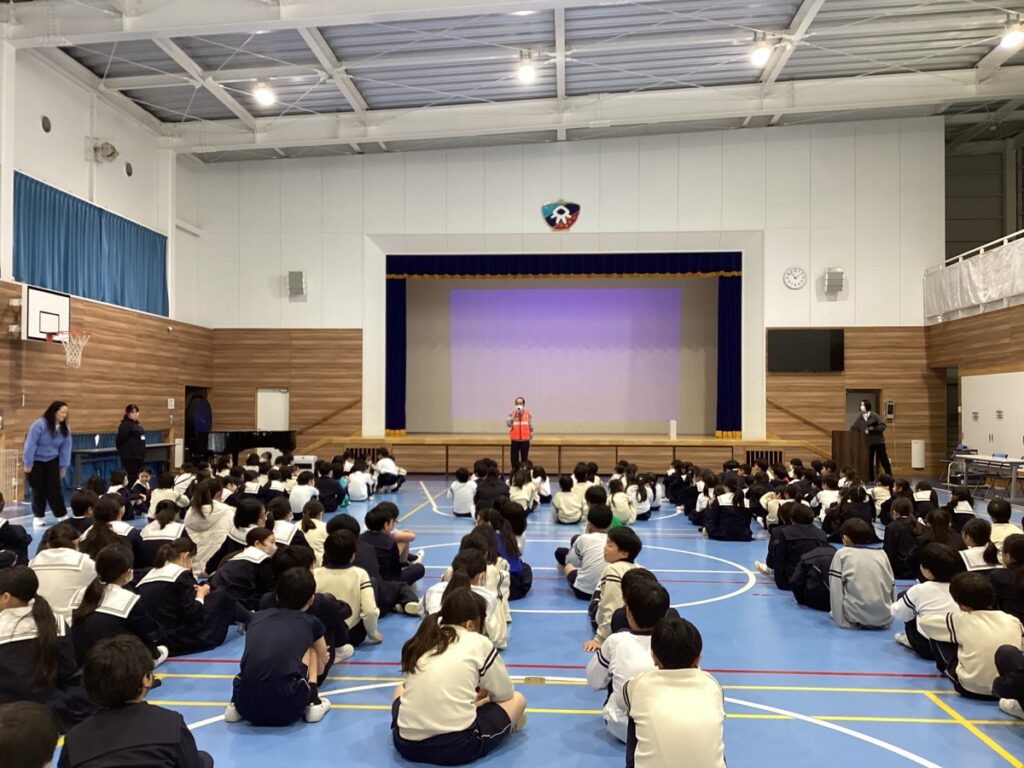 2月10日(火)5時間目、伊勢崎警察署スクールサポーターの畑さんをお迎えして不審者対応の避難訓練がありました。