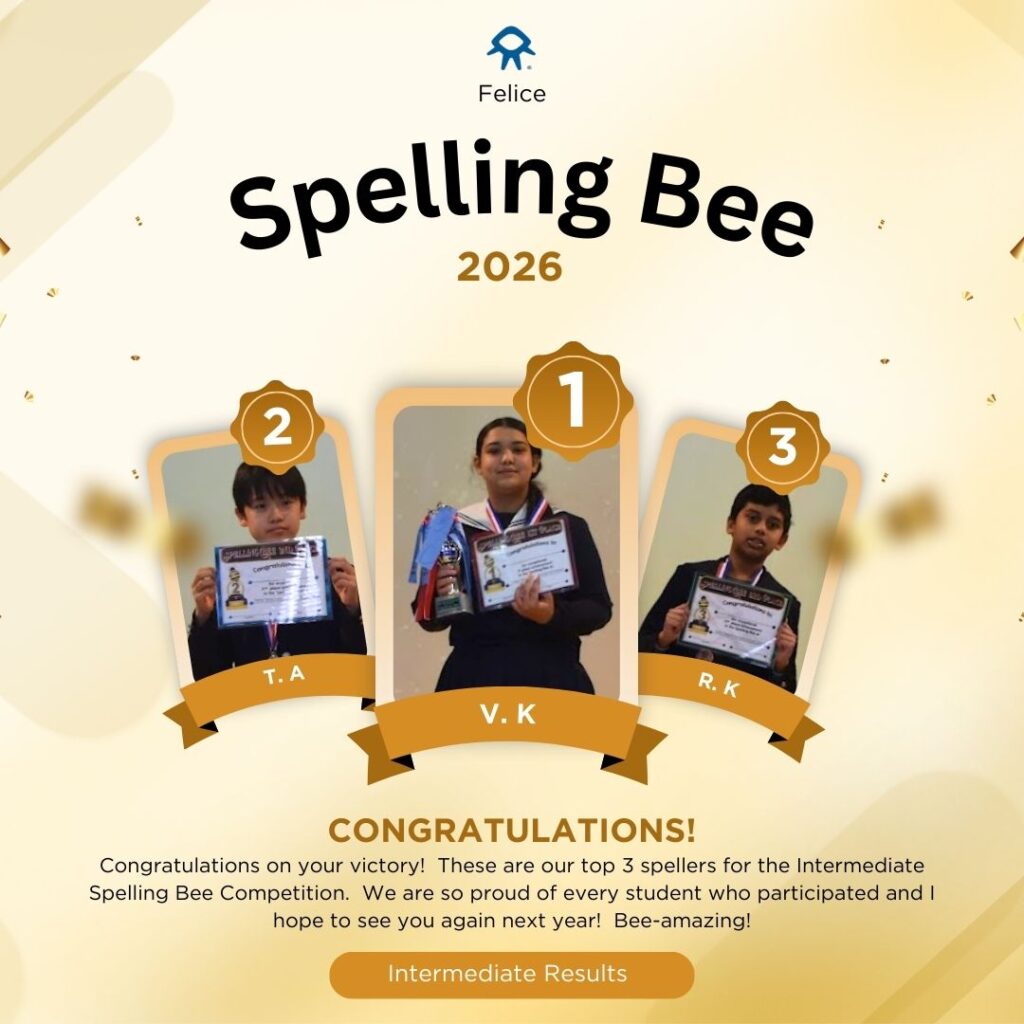What an exciting competition—every speller came prepared, confident, and ready to claim the title. The battle was fierce all the way to the end, with the championship decided by the word valiant. We are proud to announce that the winner of the Intermediate Spelling Bee will go on to represent our school at the Tokyo Spelling Bee Contest. Well done to all our outstanding spellers for an impressive and memorable round! 🐝✨
