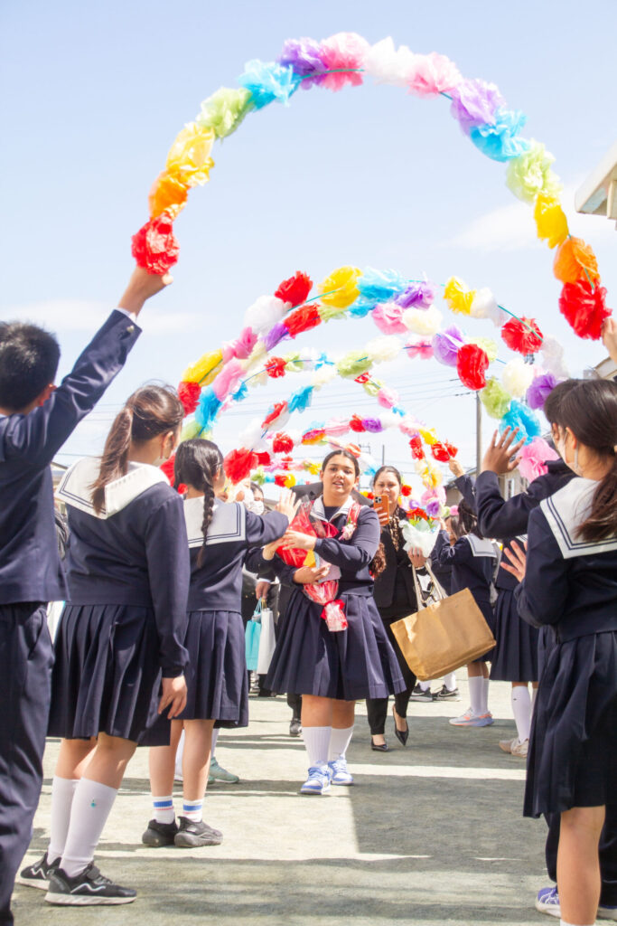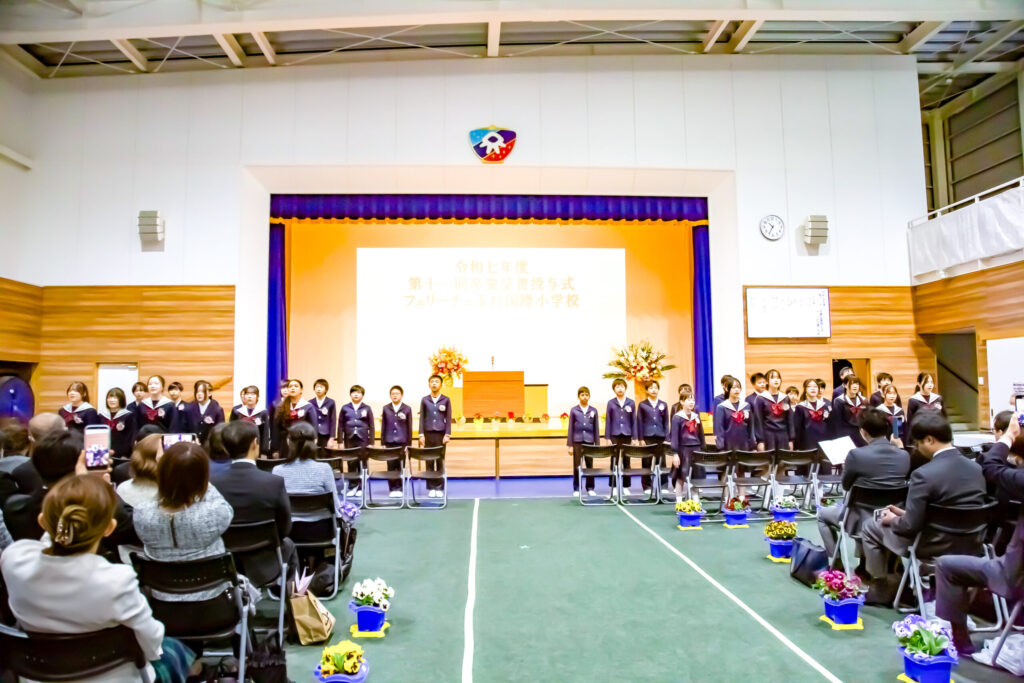 全校児童、先生方、保護者の皆様、そして地域の皆様に見守られながら、6年生33名がフェリーチェ玉村国際小学校を巣立ちました。
