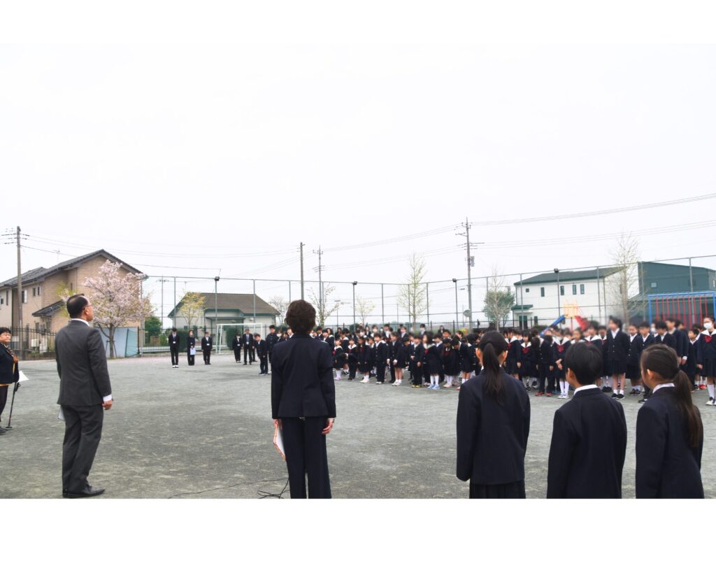 4月7日(火)、新任式と1学期始業式が校庭で行われました。